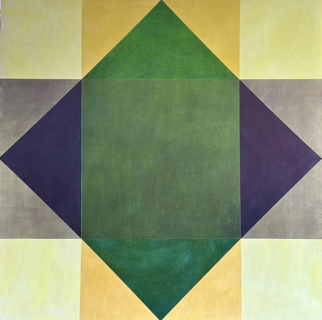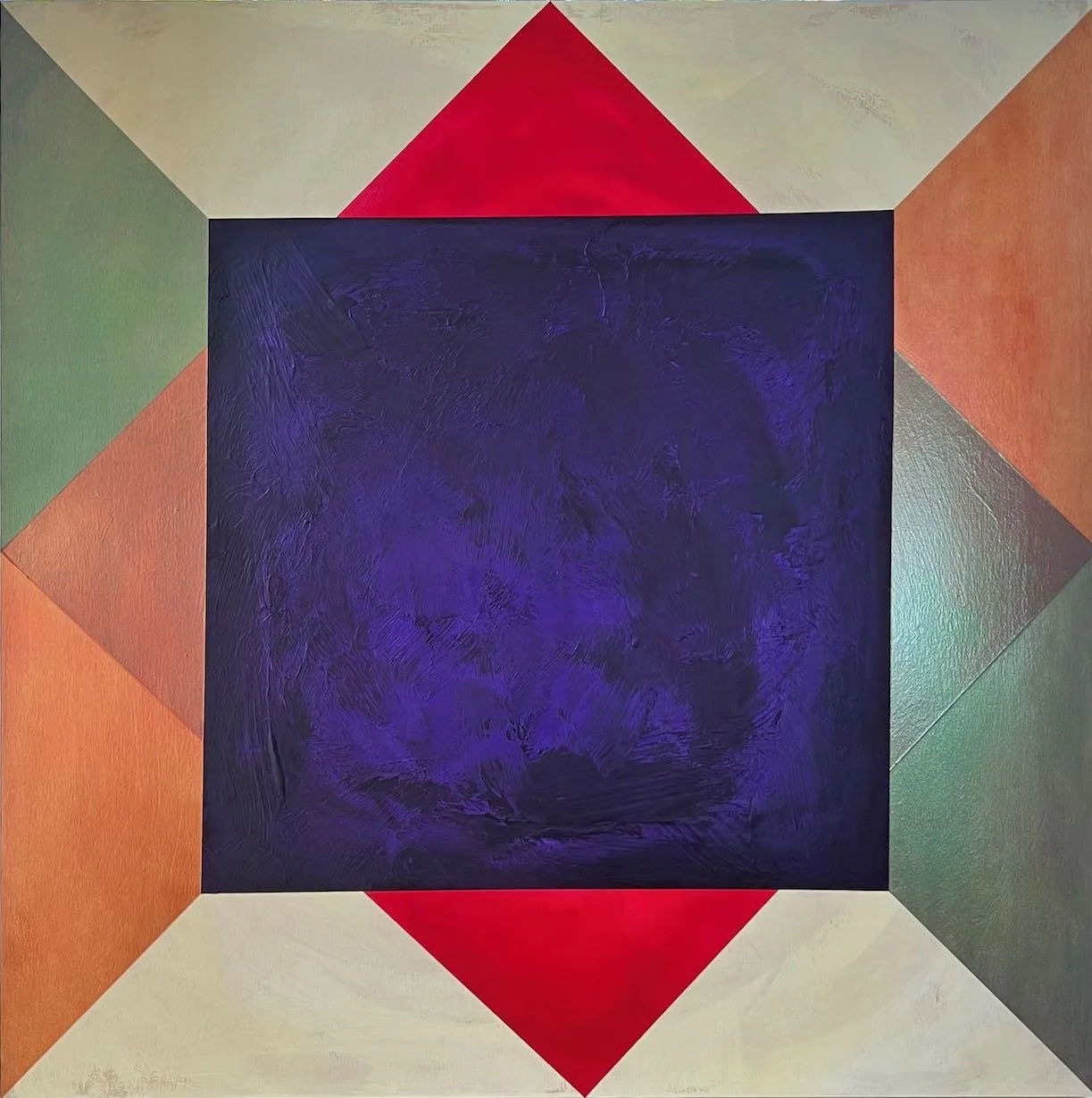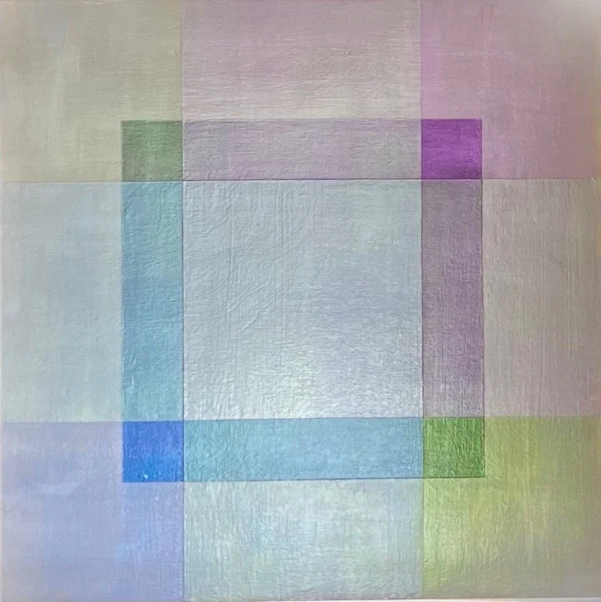 The paintings in Flatland explore geometric projections of 4-dimensional cubes onto flat wooden panels, using acrylic paint and multi-chrome pigments. Flatland serves as a metaphor for our desires and attempts to understand the inexplicable—complicated facets of problems without attainable solutions—in the specific case, due to our perceptual limitation to 3 dimensions—but also in other cases, such as our inability to understand people who think radically differently from us.