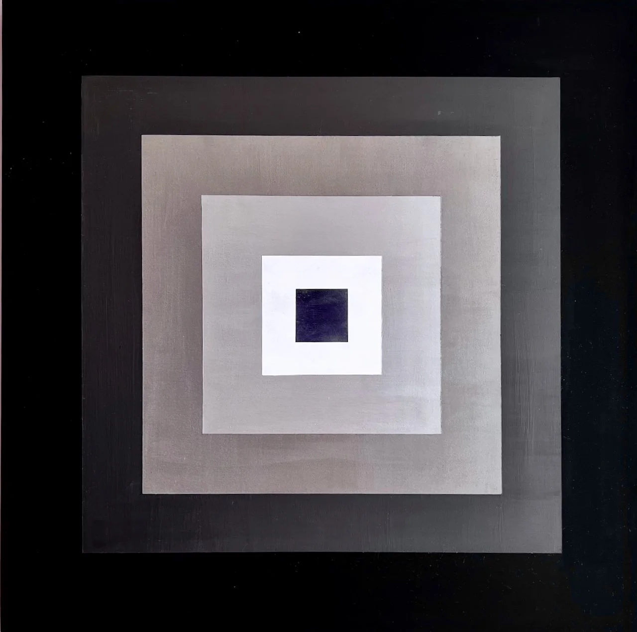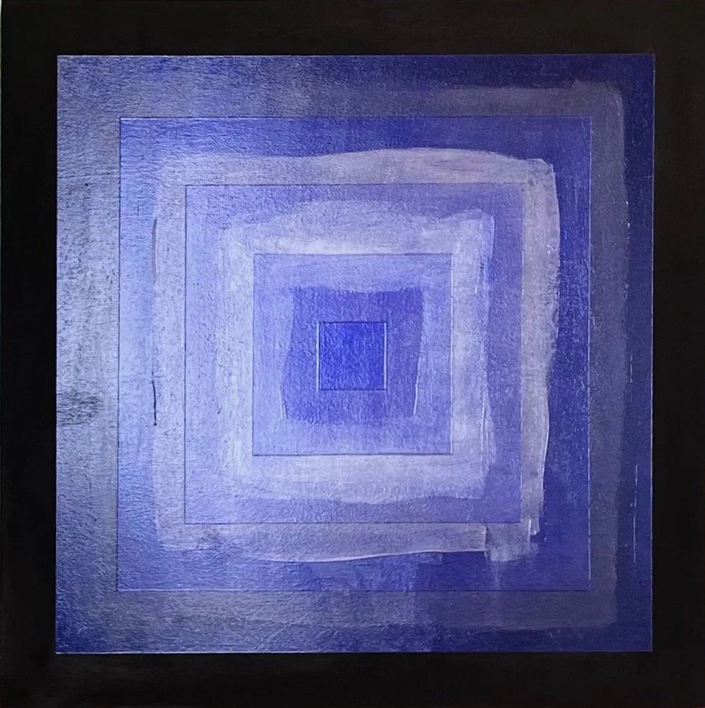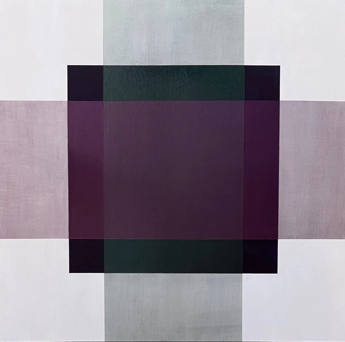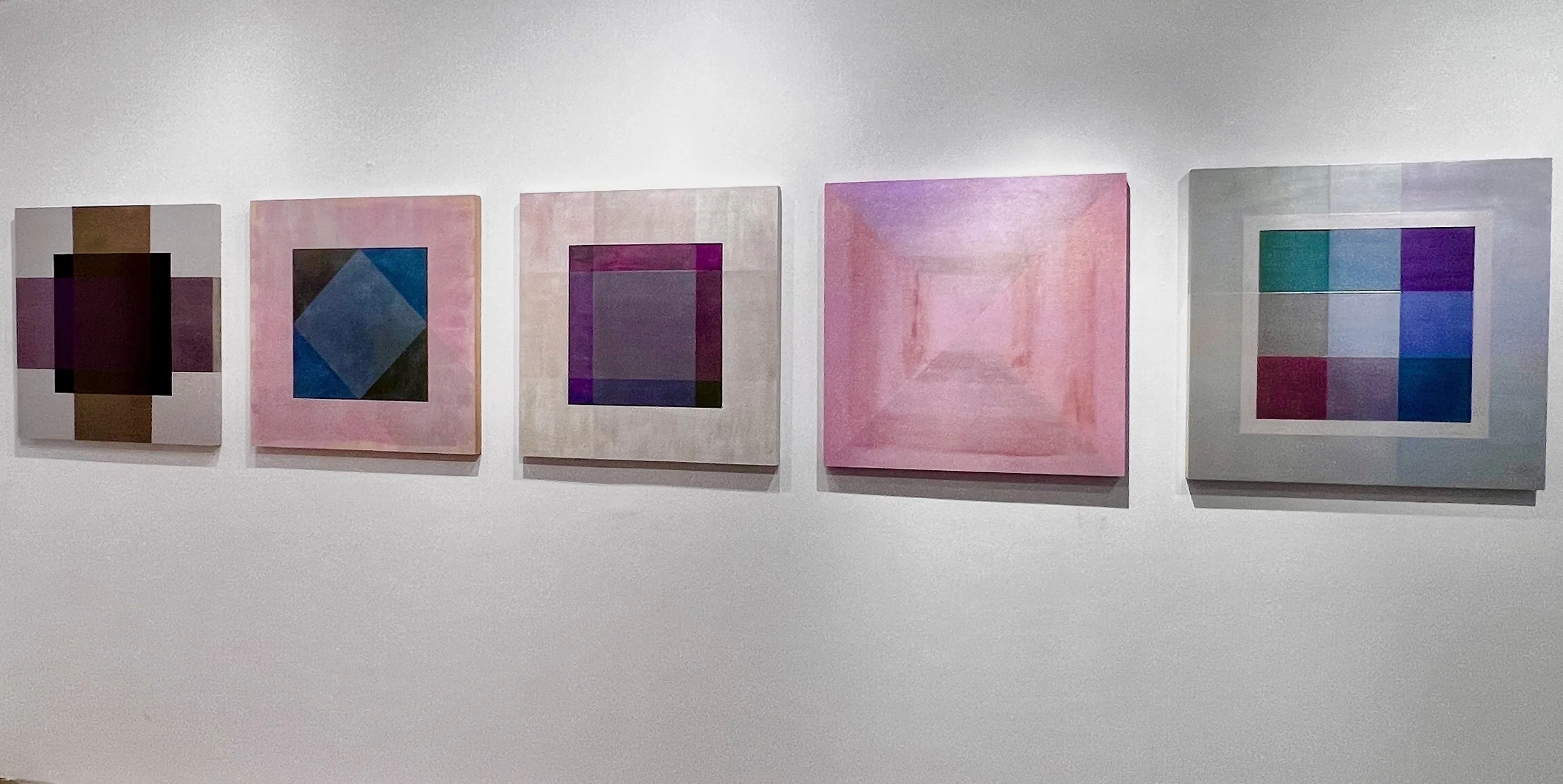 The paintings in Flatland explore geometric projections of 4-dimensional cubes onto flat wooden panels, using acrylic paint and multi-chrome pigments. Flatland serves as a metaphor for our desires and attempts to understand the inexplicable—complicated facets of problems without attainable solutions—in the specific case, due to our perceptual limitation to 3 dimensions—but also in other cases, such as our inability to understand people who think radically differently from us.