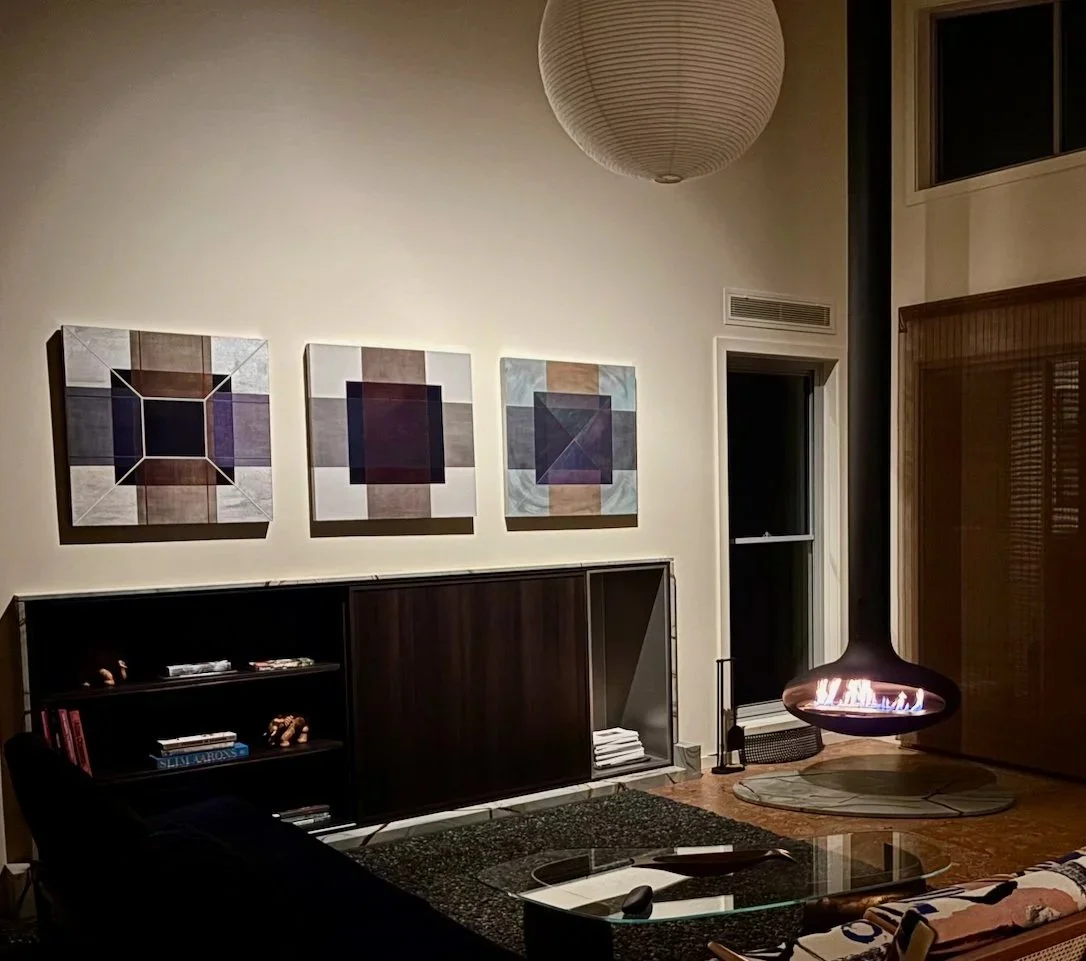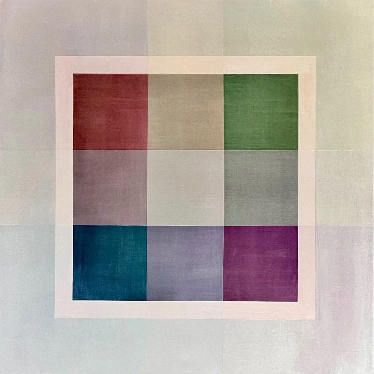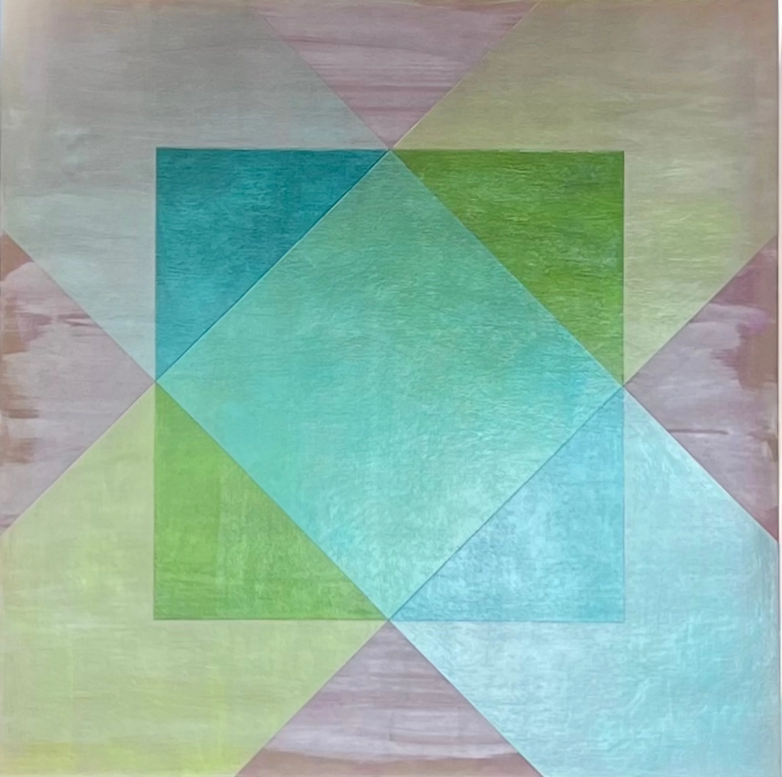 Metaphorically, this series pays homage to “Flatland”, the novella written by Edwin Abbott in 1884, which was probably the first sci-fi literature I read as a kid; it made an outsized lasting impression on me. The book is centered around a flat protagonist who is visited by sphere from the 3-dimensional world. The first part of the book sets up the societal hierarchy of Flatland, which serves as a parable of the randomness of being born into a certain gender or societal class, along with the limits and privileges associated with those attributes. When visited by the sphere, the protagonist comes to realize that there is more in the universe than he is able to perceive. When he brings this message back to the people of Flatland, he is labeled a heretic. Another lovely aspect of the book is that the visual description is essentially the basis of calculus—the building and dissecting of n-dimensional objects using planes, which is essentially the reverse of what these paintings are doing: compressing 4-dimensional cubes into 2 (and slightly more than 2) dimensions.