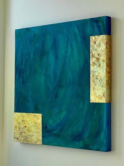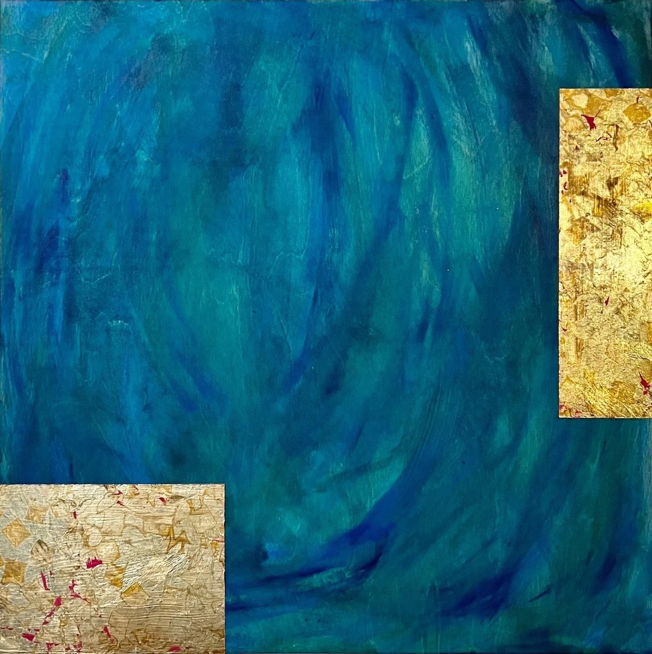 Illumination (acrylic and variegated copper leaf on wood. 30 x 30 x 2”. 2022)