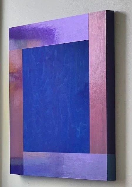 The Shape of Time Am I Blue (pigments and acrylic on wood. 24 x 24 x 2”. 2025) (skewed angle) (steeply skewed angle)