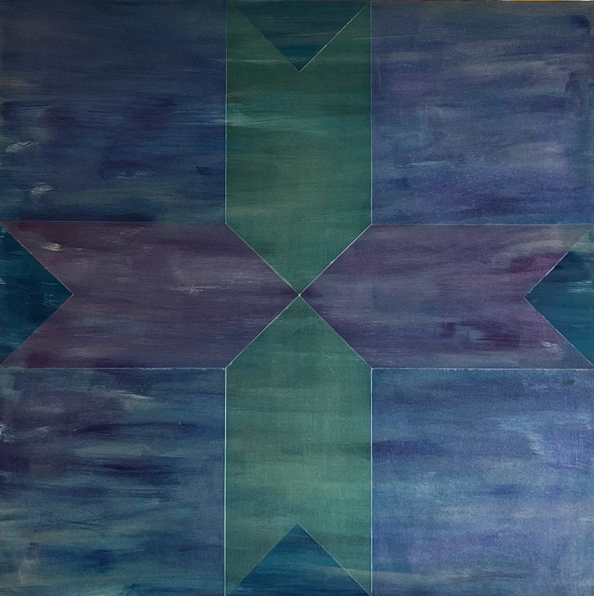 Criss Cross ( pigments and acrylic on wood. 30 x 30 x 2”. 2025)