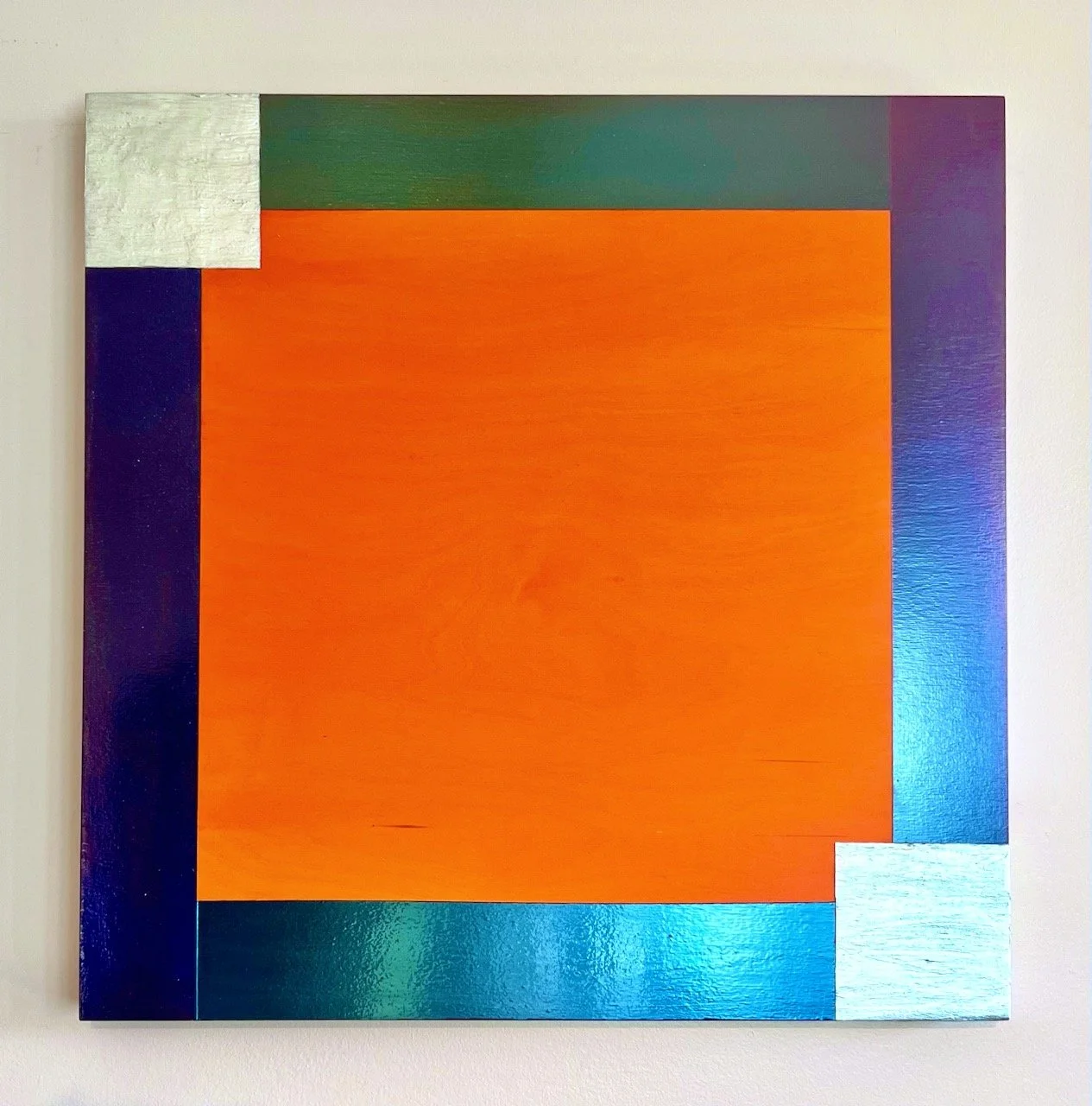 Go With The Flow (pigments, aluminum powder, and acrylic media on wood. 24 x 24 x 2”. 2025)