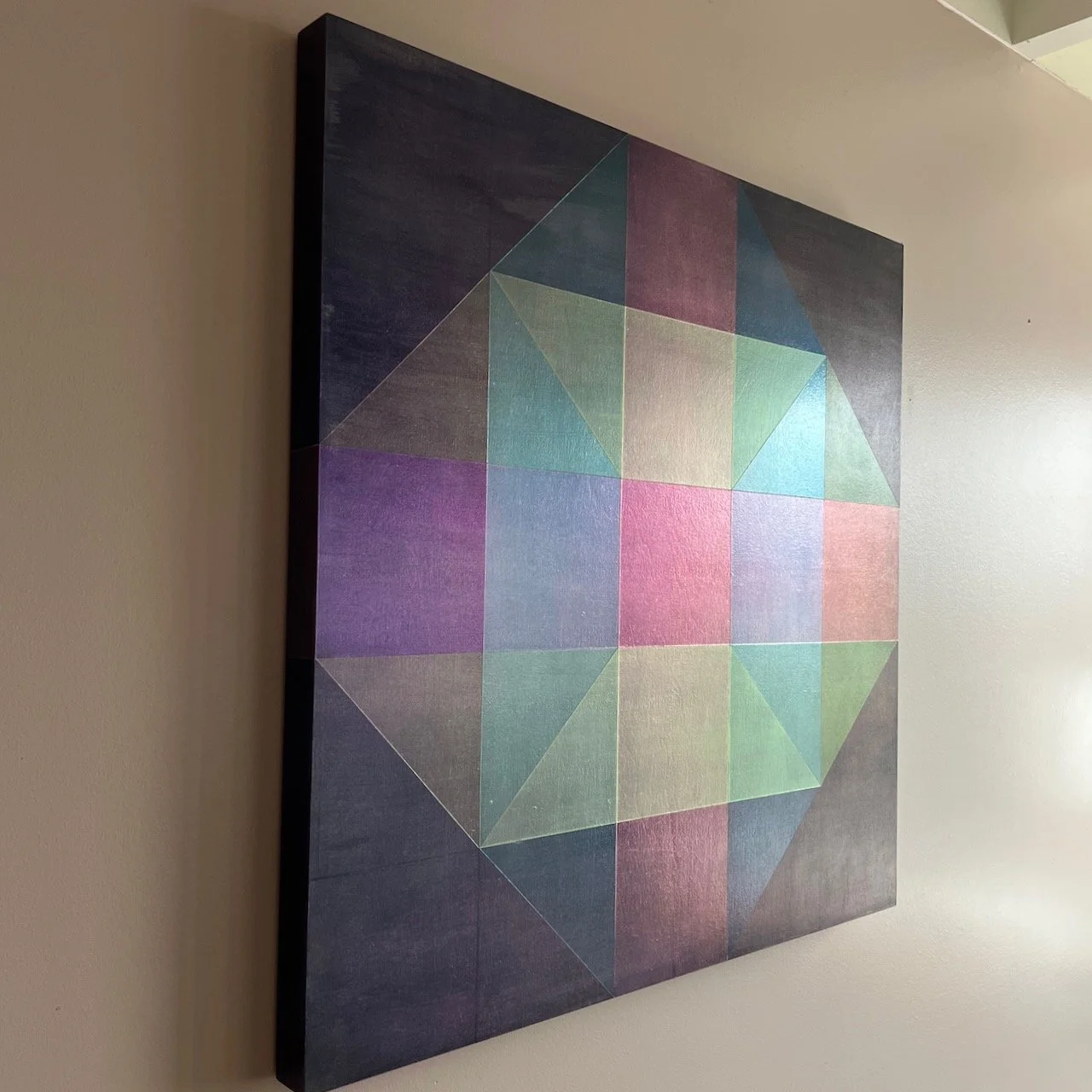 Stained ( pigments and acrylic on wood. 30 x 30 x 2”. 2025)
